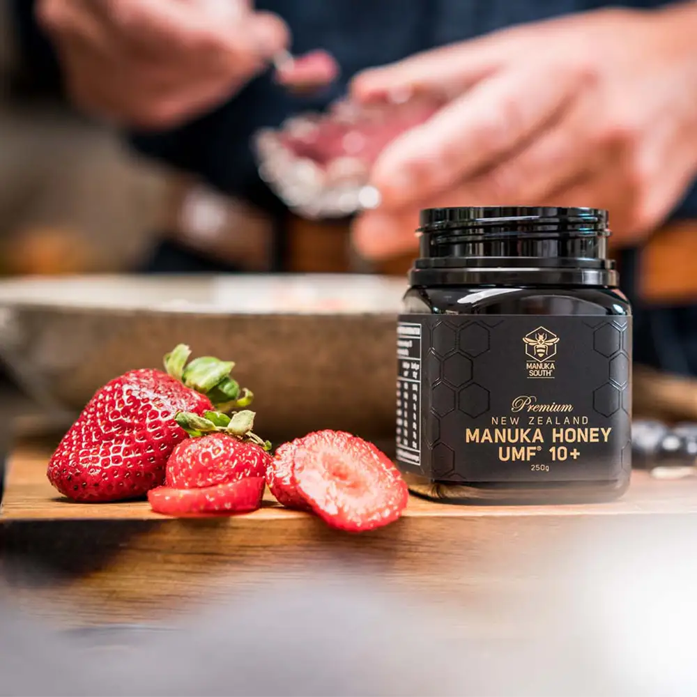 น้ำผึ้งมานูก้า UMF 15+ ของเราเป็นจุดเริ่มต้นที่ดีเยี่ยมสำหรับผู้ที่ต้องการเสริมสร้างภูมิคุ้มกันตามธรรมชาติ น้ำผึ้งมานูก้า UMF™ 15+ นี้เก็บเกี่ยวจากภูมิประเทศอันเขียวชอุ่มของนอร์ทแลนด์ นิวซีแลนด์ ผ่านการทดสอบโดยผู้เชี่ยวชาญ เพื่อให้แน่ใจว่าคุณได้รับสุขภาพที่ดีด้วยน้ำผึ้งที่อุดมไปด้วยสารประกอบมานูก้าอันเป็นเอกลักษณ์ เช่น เลปโตสเพริน และเมทิลไกลออกซาล (MGO) ไม่ว่าคุณต้องการเสริมสร้างภูมิคุ้มกันตามธรรมชาติของร่างกาย หรือดื่มด่ำกับน้ำผึ้งนี้สักช้อนชาในเครื่องดื่มแก้วโปรด น้ำผึ้งนี้คือส่วนผสมระดับพรีเมียมสำหรับกิจวัตรเพื่อสุขภาพที่ดีของคุณทุกวัน